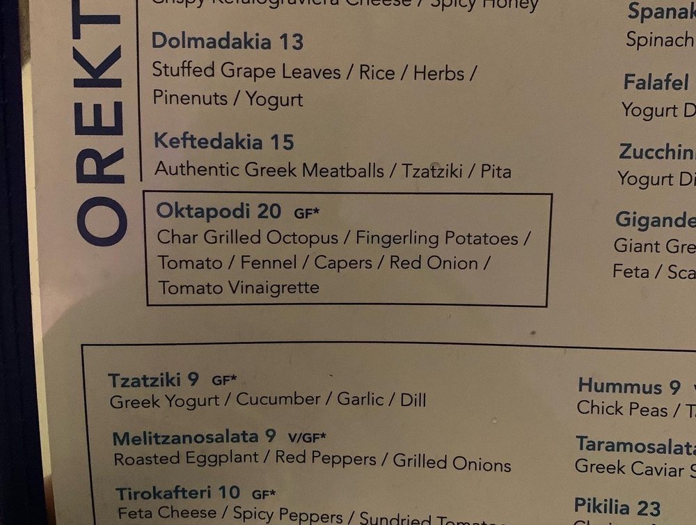 X2 Shrimp Souvlaki | X2 Salmon Souvlaki | Swordfish Souvlaki | Octopus | X2 Falafel | Roasted Veggies | Greek Tabouli | Fries | Pita | Tzatziki | Yasouvlaki Sauce